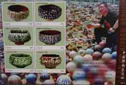近日,中國陶藝家邢良坤的作品登上了非洲國家利比里亞共和國的郵票。這套于近期發(fā)行的《中國邢陶茶道碗》郵票小全張共計(jì)六枚,分別印的是邢良坤被北京故宮博物院、英國維多利亞博物館和日本丸龜美術(shù)館收藏的六件茶道碗。 邢良坤至今已創(chuàng)作出六萬多件精美的陶藝作品,其作品被10多家國內(nèi)外博物館收藏。