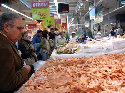 西班牙馬德里市民日前在超市內(nèi)選購食品。根據(jù)西班牙農(nóng)業(yè)、漁業(yè)和食品部統(tǒng)計,在圣誕節(jié)期間,西班牙家庭在食品上的開支將比平常月份增加30%。整個圣誕期間,西班牙人將在購買食物上總共花費近60億歐元。