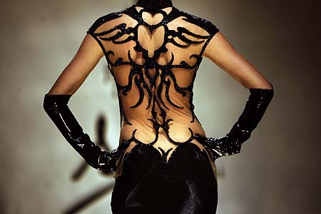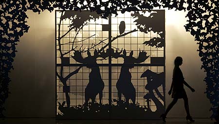 一名模特在巴西圣保羅2007秋冬時裝周上表演。這場表演的舞臺設(shè)計猶如剪紙造型。