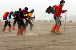 2月4日,一批戶外運(yùn)動(dòng)愛(ài)好者穿越位于新疆的庫(kù)木塔格沙漠。此次穿越挑戰(zhàn)賽歷時(shí)24小時(shí),戶外運(yùn)動(dòng)愛(ài)好者們晝夜不停地徒步行走了40多公里。