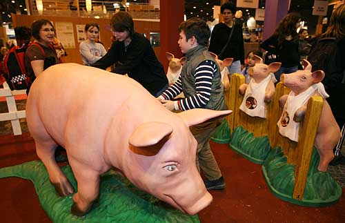 3日,在法國(guó)巴黎舉行的國(guó)際農(nóng)業(yè)博覽會(huì)上,一個(gè)用豬模型布置的展臺(tái)吸引了不少觀眾。當(dāng)天,為期9天的第44屆法國(guó)國(guó)際農(nóng)業(yè)博覽會(huì)在巴黎凡爾賽門展覽中心開幕。法國(guó)國(guó)際農(nóng)業(yè)博覽會(huì)始于1964年,是世界著名的大型農(nóng)業(yè)博覽會(huì)之一,每年該博覽會(huì)的參觀人數(shù)都多達(dá)數(shù)十萬(wàn)。 |
