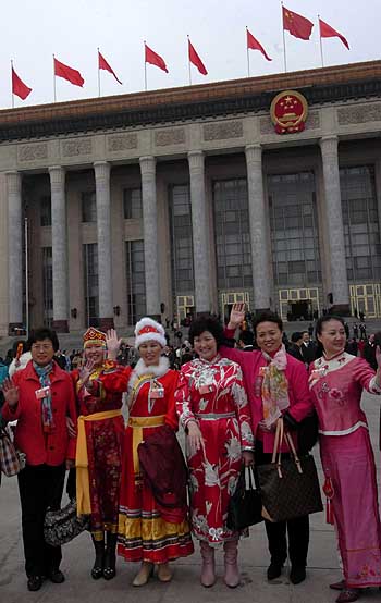 3月16日,第十屆全國人民代表大會第五次會議在北京人民大會堂閉幕。這是代表們在閉幕會后留影。