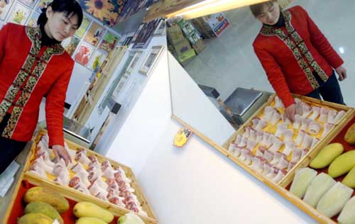 3月20日,工作人員在鄭州一臺灣農(nóng)產(chǎn)品專賣店整理物品。當(dāng)天,為擴大臺灣產(chǎn)農(nóng)產(chǎn)品在大陸的銷售,商務(wù)部決定大陸正式開始對原產(chǎn)臺灣地區(qū)的11種蔬菜和8種水產(chǎn)品實施進口零關(guān)稅措施。