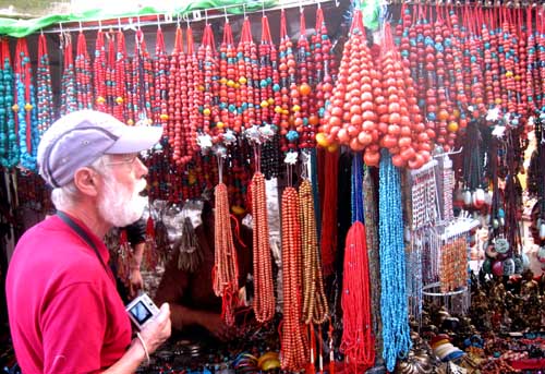 3月22日,拉薩八廓街上的各種工藝品吸引來藏的外國人。西藏自治區(qū)旅游局的統(tǒng)計(jì)數(shù)字顯示,今年1至2月,西藏共接待海內(nèi)外游客90482人次,其中國內(nèi)游客和國外游客與去年同期相比分別增長了11.4%和17%,實(shí)現(xiàn)旅游總收入6509萬元。