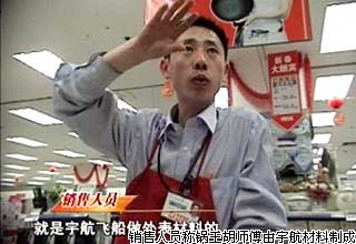“鍋王胡師傅”號(hào)稱“宇航材料、無油煙、不粘鍋”,廣告做得鋪天蓋地,定價(jià)也高達(dá)599元。昨天(26日),經(jīng)央視調(diào)查和上海材料研究所檢測(cè)中心檢測(cè),“鍋王”只不過是一種普通的鋁合金鍋,成本不過數(shù)十元。 近兩年來,一種號(hào)稱解決了廚房油煙問題的“鍋王胡師傅”,在各種媒體上掀起大規(guī)模的廣告攻勢(shì)——“全球市場(chǎng)上第一個(gè)真正意義上的無油煙不粘鍋”、“采用了一種特殊材質(zhì),能將鍋體溫度控制在油煙揮發(fā)的臨界點(diǎn)240℃以內(nèi),從而達(dá)到無油煙的效果……” 據(jù)悉,北京的物美、華堂、易初蓮花等大型商場(chǎng)超市內(nèi)都設(shè)有胡師傅無煙鍋的銷售專柜。這種鍋的定價(jià)是普通鍋的10多倍。銷售人員稱,昂貴是因?yàn)槭褂玫牟牧蠟殄i鈦(合)金,也就是宇航飛船的外表材料。該鍋的包裝上還稱:該鍋鍋體熔合了純天然礦產(chǎn)紫砂。該紫砂“能分解食物中的脂肪,降低膽固醇,有纖體、美容、益智、延年益壽之功效”。