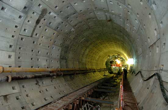 “萬里長江第一隧”——武漢長江隧道正在順利推進,4月8日,一號隧道已累計掘進318米,并安全從武九鐵路地下通過。預(yù)計將于今年6月份進入長江江底施工階段。武漢長江隧道是萬里長江上的第一條全程過江公路隧道,隧道總長約3630米,是一條左、右隧洞隔離的雙向4車道公路隧道。武漢長江隧道2004年12月開工,預(yù)計2008年底竣工通車。