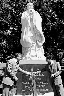 古人繪孔子像 | 2007年3月25日,新加坡南洋理工大學(xué)孔子學(xué)院三樓大禮堂座無虛席,來自中國北京師范大學(xué)的于丹教授以行云流水般的風(fēng)格,與400多名觀眾一起分享了她在國內(nèi)引起巨大轟動的《論語》心得。以孔子為代表的儒家安身立命之道與倫理理念跨越千山萬水、打破幾千年時間阻隔,再次征服了今天的人們。聽眾紛紛表示,講座是一趟讓人享受的“文化之旅”。