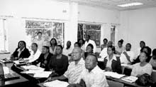 津巴布韋大學(xué)孔子學(xué)院首個漢語教學(xué)班的師生正在上課。新華社記者 李努爾 攝