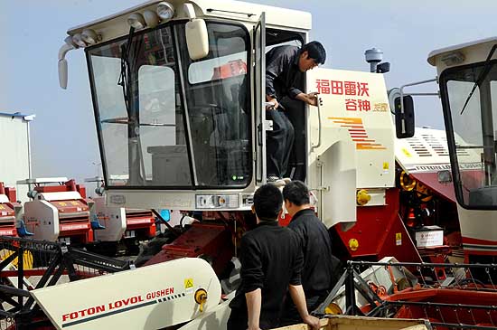 4月11日,農(nóng)戶正在銀川西部農(nóng)資城挑選農(nóng)機(jī)。2007年,中央和寧夏財政共安排2000萬元資金幫助農(nóng)民購置農(nóng)機(jī),以提高寧夏全區(qū)農(nóng)機(jī)化裝備水平,農(nóng)機(jī)購置補(bǔ)貼極大地調(diào)動了農(nóng)民購買農(nóng)機(jī)具的積極性。