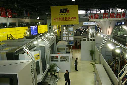 4月14日拍攝的展廳一角。第十屆中國國際機床展覽會4月9日至15日在京舉行,該展會是國內(nèi)規(guī)模最大、水平最高的專業(yè)國際機床工具展覽會,共有來自28個國家和地區(qū)的1100余家機床工具企業(yè)和研究機構(gòu)參展。