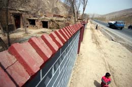 甘肅永靖縣是國(guó)家扶貧重點(diǎn)縣,全縣貧困面10%,個(gè)別鄉(xiāng)鎮(zhèn)的貧困面更是達(dá)到70%以上。記者近日在永靖縣采訪時(shí)發(fā)現(xiàn),這個(gè)縣部分公路兩邊,砌了九處、總長(zhǎng)度兩公里多的高墻,用來(lái)?yè)踝∞r(nóng)民破舊的房屋和院落,村莊看上去鮮亮整潔。而當(dāng)?shù)匾恍┐迕裣蛴浾叻从常谶@些墻體的后面,還有部分農(nóng)戶家里缺糧斷水,生活極其貧困。