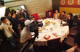 由河北省石家莊市西兆通鎮(zhèn)的村民郝俊臣與五個農(nóng)民朋友籌資50萬元,自拍、自導(dǎo)、自演的高清晰電影《山杏》近日在石家莊市緊張拍攝。該影片描寫的是河北貧困山區(qū)的女孩山杏考上大學(xué),在村民的幫助下交上學(xué)費,畢業(yè)后她婉言謝絕男朋友的挽留,毅然回到家鄉(xiāng),用學(xué)到的農(nóng)業(yè)科學(xué)知識幫助鄉(xiāng)親們致富的故事。影片中主要演員有六人是土生土長的農(nóng)民。據(jù)了解,這部電影是廣電總局立項批準的中國農(nóng)民自己拍攝的第一部高清晰電影。圖為電影《山杏》的一個拍攝場景。 |