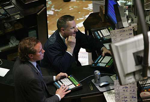 24日,兩名交易員在美國紐約證券交易所股票交易大廳工作。當日紐約股市收盤時,道瓊斯指數(shù)較前一個交易日上漲34.54點,收于12953.94點,漲幅為0.27%。道瓊斯指數(shù)盤中曾創(chuàng)下12989.86點的歷史新高,步步迫近13000點大關(guān)。