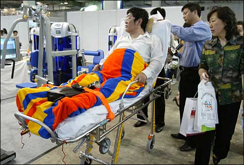 近日,在北京國際展覽中心開幕的國際殘疾人、老人用品展上,匯聚了中國、日本、德國、新西蘭等16個國家著名品牌研發(fā)的殘疾人用品和老人用品,其中包括假肢、假肢附件、運(yùn)動輪椅、老人生活必備品等。圖為展示的一款新型康復(fù)床電動輪椅。