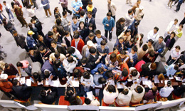 5月16日,眾多應聘者在沈陽殘疾人就業(yè)雙向選擇洽談會上與用工單位人員洽談。