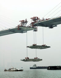 蘇通大橋最后一對鋼箱梁順利吊裝就位