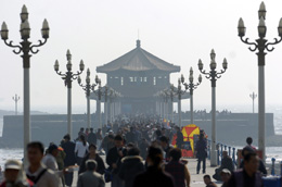 隨著暑期來臨,山東青島旅游逐漸升溫。自5月1日以來已有近200萬人次來青島旅游,奧運(yùn)游、自駕休閑游等成為2007年青島旅游的新熱點(diǎn)。圖為游客在青島海濱棧橋風(fēng)景點(diǎn)游覽。