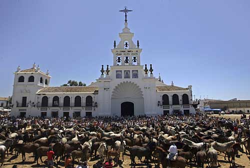 | 26日,在西班牙南部瓜達(dá)爾基維爾河口地區(qū)的埃爾羅西奧,人們在“驅(qū)趕母馬”活動(dòng)上將眾多母馬匯集到一起。瓜達(dá)爾基維爾河口地帶是西班牙南部著名的養(yǎng)馬地。每年6月26日,牧人們都要舉行“驅(qū)趕母馬”活動(dòng),將放養(yǎng)在河口地區(qū)多尼亞納國家公園里的母馬先集中到埃爾羅西奧,再集體趕往附近的阿爾蒙特參加傳統(tǒng)的牲畜集市。上百匹馬集體行動(dòng),場面蔚為壯觀。目前,這已經(jīng)成為當(dāng)?shù)刂匾哪翗I(yè)傳統(tǒng)文化活動(dòng)。 | |
