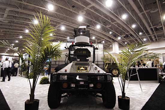 7日,在美國(guó)華盛頓會(huì)議中心,通用動(dòng)力公司展出該公司研發(fā)生產(chǎn)的一種無(wú)人巡邏車。2007年北美無(wú)人駕駛系統(tǒng)展覽在此中心舉行,292家參展商帶來(lái)了涉及無(wú)人駕駛系統(tǒng)60個(gè)技術(shù)層面的參展品。