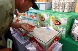 8月8日,黑龍江省慶安縣農(nóng)特產(chǎn)品展銷會(huì)上,一位中年人在查看散裝大米。當(dāng)日,兩年一度的綠色食品節(jié)在黑龍江省綏化市慶安縣拉開帷幕。綠色食品節(jié)期間舉行了農(nóng)特產(chǎn)品展銷會(huì),數(shù)萬人穿梭于展銷街上了解商品行情,不少農(nóng)戶還借機(jī)尋找發(fā)展商機(jī)。