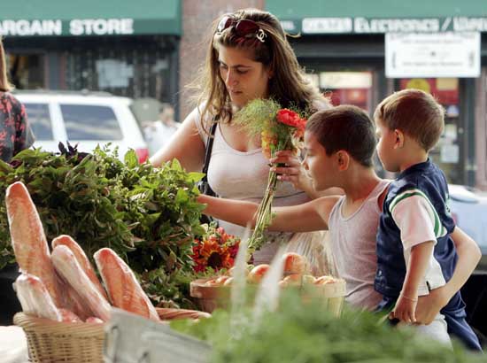 14日,在美國馬薩諸塞州,居民們選購由孩子們種植的蔬菜。當?shù)孛磕甓紩?0名14至17歲的青少年參加“食品工程”組織的活動,在農場上種植農作物,收獲后或與社區(qū)居民們分享或贈與慈善組織。