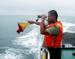 9月2日,浙江海警一支隊(duì)官兵在海上進(jìn)行搜救工作。當(dāng)日凌晨2時(shí),浙江溫州海域發(fā)生一起沉船事故,一艘韓國(guó)籍貨輪與一艘中國(guó)籍漁船相撞,中國(guó)漁船當(dāng)場(chǎng)沉沒(méi),七名船員全部落水。截至9月2日16時(shí)30分,已有一人獲救,其余六人仍下落不明。