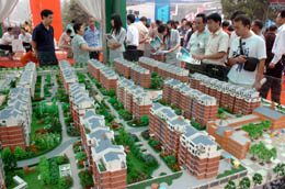 9月13日,2007秋季河南住房展示交易會在河南鄭州開幕,來自河南各地市的幾十家房產(chǎn)商參加了本次交易會。這是市民在觀看樓盤模型。