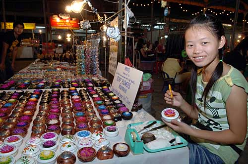 9月15日,一位小姑娘在泰國清邁長康路夜市上制作燭花和皂花。清邁是泰國第二大城市,也是泰國北部政治、經(jīng)濟和文化中心,這里曾長期作為泰國納蘭王朝的首都。清邁人秉承了世代相傳的手工藝技巧,使清邁成為全球最大的手工藝品制造中心之一。每當夜幕降臨,各種手工藝品匯集的清邁長康路成為最讓游客心儀神往的繁華夜市。