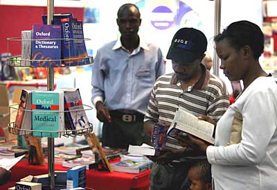26日,參觀者在肯尼亞首都內(nèi)羅畢舉行的國際圖書展上選購圖書。當(dāng)天,為期5天的第十屆內(nèi)羅畢國際圖書展在肯尼亞首都內(nèi)羅畢開幕,來自肯尼亞境內(nèi)外的60多家書商及出版商參展。一年一度的內(nèi)羅畢國際圖書展是肯尼亞規(guī)模最大的圖書展,在東非地區(qū)也頗有影響。