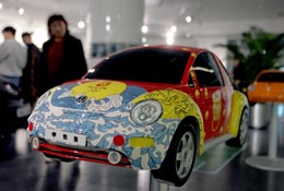 “奧運(yùn)繪”藝術(shù)車大賽獲獎作品展日前在北京王府井舉行。這些彩繪車模作品運(yùn)用青花瓷器、剪紙、京劇等中國元素,將奧運(yùn)形象融合其中。