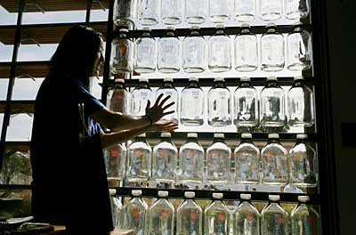 15日,在美國華盛頓舉行的太陽能十項全能競賽中,來自賓夕法尼亞州立大學(xué)的一位選手展示其所在團隊設(shè)計的獲獎作品。全球20所大學(xué)的團隊參加了今年的太陽能十項全能競賽。選手們在比賽期間設(shè)計、建造出最適宜居住的、最節(jié)能的、完全由太陽能供電的節(jié)能型住宅。