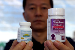 10月16日,蘭州天業(yè)植物藥研究所的工作人員在展示治療頸椎病和腰椎間盤(pán)突出癥的特效中藥。當(dāng)日,正在深圳舉行的第九屆高交會(huì)上,由甘肅蘭州天業(yè)植物藥研究所利用中藥萃取新工藝研發(fā)出的系列藥品受到業(yè)界關(guān)注。該藥經(jīng)美國(guó)食品和藥品管理局(FDA)檢驗(yàn)合格并獲準(zhǔn)自由銷售,是我國(guó)中藥打進(jìn)國(guó)際主流市場(chǎng)過(guò)程中為數(shù)不多的優(yōu)秀范例。 |
