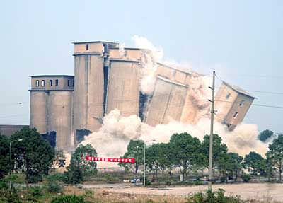 11月8日,江蘇溧陽市南渡鎮(zhèn)原強埠水泥廠內(nèi)的機立窯水泥生產(chǎn)線群被爆破拆除。