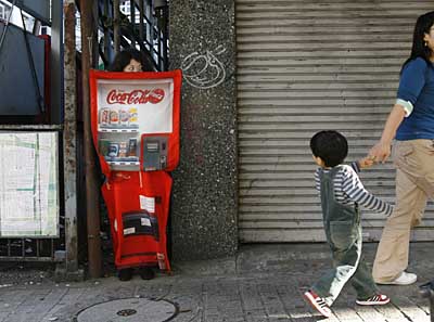 11月7日,在日本首都東京,一名男孩回頭觀看一個(gè)不同尋常的“自動(dòng)售貨機(jī)”。這是日本設(shè)計(jì)師月岡阿野設(shè)計(jì)的圖案酷似自動(dòng)售貨機(jī)的特制服裝,人們可以在街頭用它偽裝自己,以避免人身安全受到威脅。
