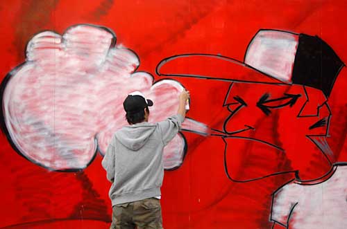 中國首屆涂鴉魅力藝術(shù)展近日在北京中國國際展覽中心亮相。展覽基本覆蓋了國內(nèi)涂鴉創(chuàng)作優(yōu)秀團(tuán)隊(duì)及個(gè)人的作品,很多作品帶有濃烈的地域特征和文化色彩。不少團(tuán)隊(duì)還現(xiàn)場進(jìn)行了涂鴉創(chuàng)作。