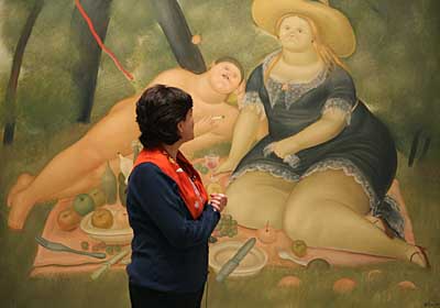 19日,哥倫比亞藝術(shù)家費(fèi)爾南多·博特羅的作品《草地上的午餐》在美國紐約的索斯比拍賣行展出。索斯比拍賣行將在20日和21日舉行拉丁美洲藝術(shù)品專場拍賣會(huì)。