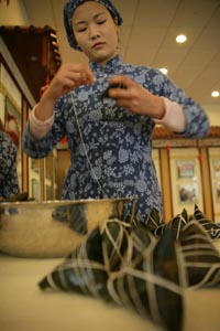11月26日,浙江嘉興五芳齋集團(tuán)職工在展示快速包粽子手藝。五芳齋集團(tuán)是全國最大的粽子產(chǎn)銷商,全國食品業(yè)納稅百強(qiáng),百年來,老字號(hào)的五芳齋集團(tuán)在新舊觀念碰撞中不斷發(fā)展,尤其在改革開放以來求新求變,在發(fā)揚(yáng)中國傳統(tǒng)飲食文化中作出了積極的貢獻(xiàn)。目前五芳齋粽子遠(yuǎn)銷亞、歐、美、澳、非五大洲。據(jù)了解,在權(quán)威部門公布的資料表明,五芳齋品牌價(jià)值已達(dá)5.23億。 |