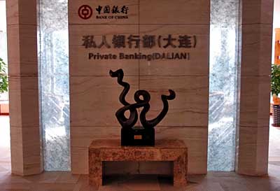 12月15日在大連拍攝的中國(guó)銀行私人銀行部。中國(guó)銀行旗下的服務(wù)于高端客戶的私人銀行部將于12月在大連開業(yè)。中國(guó)銀行今年3月在上海和北京成立私人銀行部,為100萬美元以上金融資產(chǎn)客戶提供專業(yè)服務(wù)。