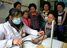 從11月開始,廣西融水縣開展2007年度新型農(nóng)村合作醫(yī)療健康體檢,醫(yī)務(wù)工作者分批深入苗家瑤寨,為34萬農(nóng)民免費(fèi)全面體檢。
