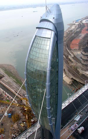 安徽蕪湖臨江大橋魚形主塔工程完工