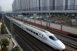 1月6日,一輛“和諧號”列車從京滬鐵路線上駛過。 2008年1月5日,鐵道部下屬的鐵道工程交易中心公布總價達837億元的京滬高鐵土建工程由中國中鐵、中鐵建設(shè)集團有限公司等六家公司承建。據(jù)介紹,京滬高速鐵路工程預(yù)計將在春節(jié)前開工。