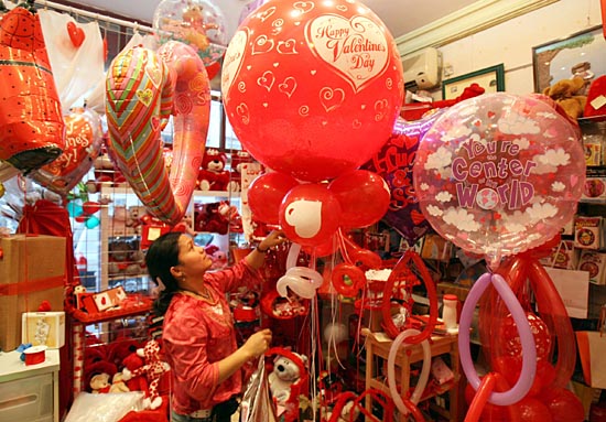 13日,在科威特首都科威特城的一家商店里,售貨員在準(zhǔn)備禮品,迎接情人節(jié)的到來。
