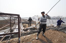 2月17日,舒城縣農(nóng)科所工作人員在進行災(zāi)后重建。1月中下旬,安徽舒城縣遭遇罕見雪災(zāi),工農(nóng)業(yè)生產(chǎn)、群眾住房以及供電、廣播、通信、交通等基礎(chǔ)設(shè)施損失嚴(yán)重。目前,當(dāng)?shù)卣褪転?zāi)群眾同心協(xié)力,正采取一系列措施積極開展災(zāi)后重建和生產(chǎn)自救。