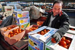 2月18日,寧夏賀蘭縣立崗鎮(zhèn)蔬菜基地菜農(nóng)馬云愧正在銀川北環(huán)蔬菜批發(fā)市場(chǎng)銷售西紅柿。 連日來(lái),隨著銀川市各主要蔬菜種植基地災(zāi)后生產(chǎn)恢復(fù)正常,加上公路交通運(yùn)輸?shù)臅惩,銀川市各蔬菜批發(fā)市場(chǎng)貨源充足,價(jià)格開(kāi)始平穩(wěn)回落,西紅柿、黃瓜、西芹、豆角兒等常見(jiàn)蔬菜價(jià)格較春節(jié)期間下降20%以上。 |