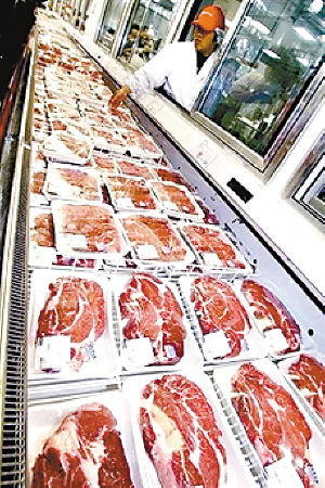 日本一家超市貨架上擺滿了從美國(guó)進(jìn)口的牛肉。資料圖片 | 屠宰場(chǎng)虐待病牛