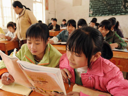 2月25日,廣西河池市南丹縣里湖中學初一年級學生在上英語課。當日是廣西中小學新學期開學第一天,雖然遭受了百年不遇的冰凍災害襲擊,但廣西有關部門在災后迅速開展校舍重建工作,采取多項措施解決學校開學問題,確保災區(qū)中小學如期開學。