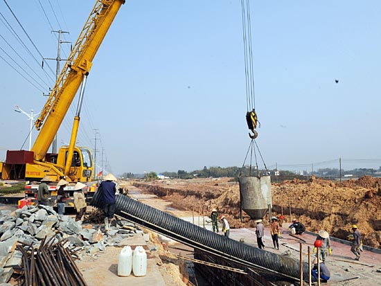 記者從廣西壯族自治區(qū)交通廳獲悉,2008年廣西將新增建設(shè)農(nóng)村公路7000余公里,通過多種方式籌措資金,解決農(nóng)村公路養(yǎng)護(hù)難問題,實現(xiàn)“有路必養(yǎng)”。圖為施工人員在廣西欽州市正在建設(shè)的農(nóng)村公路現(xiàn)場施工。