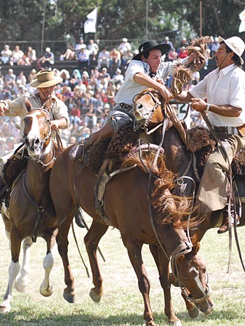 16日,烏拉圭騎手們?cè)谑锥济傻镁S的亞的普拉多公園參加馴馬比賽。當(dāng)天,烏拉圭最重要的節(jié)日之一“克里奧爾周”開始,高喬人的馴馬比賽是最吸引人的節(jié)慶活動(dòng)。生活在阿根廷和烏拉圭潘帕斯草原上的牛仔被稱為“高喬人”。