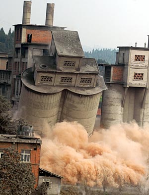 3月18日,四川江油市武都水泥有限公司一條年生產(chǎn)能力5萬(wàn)噸的機(jī)立窯生產(chǎn)線被爆破拆除。為貫徹落實(shí)國(guó)家節(jié)能減排政策,促進(jìn)區(qū)域內(nèi)水泥工業(yè)升級(jí),江油市今年將陸續(xù)淘汰4條落后的水泥生產(chǎn)線。