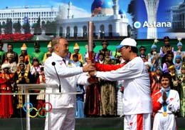 北京奧運(yùn)圣火在哈薩克斯坦傳遞
